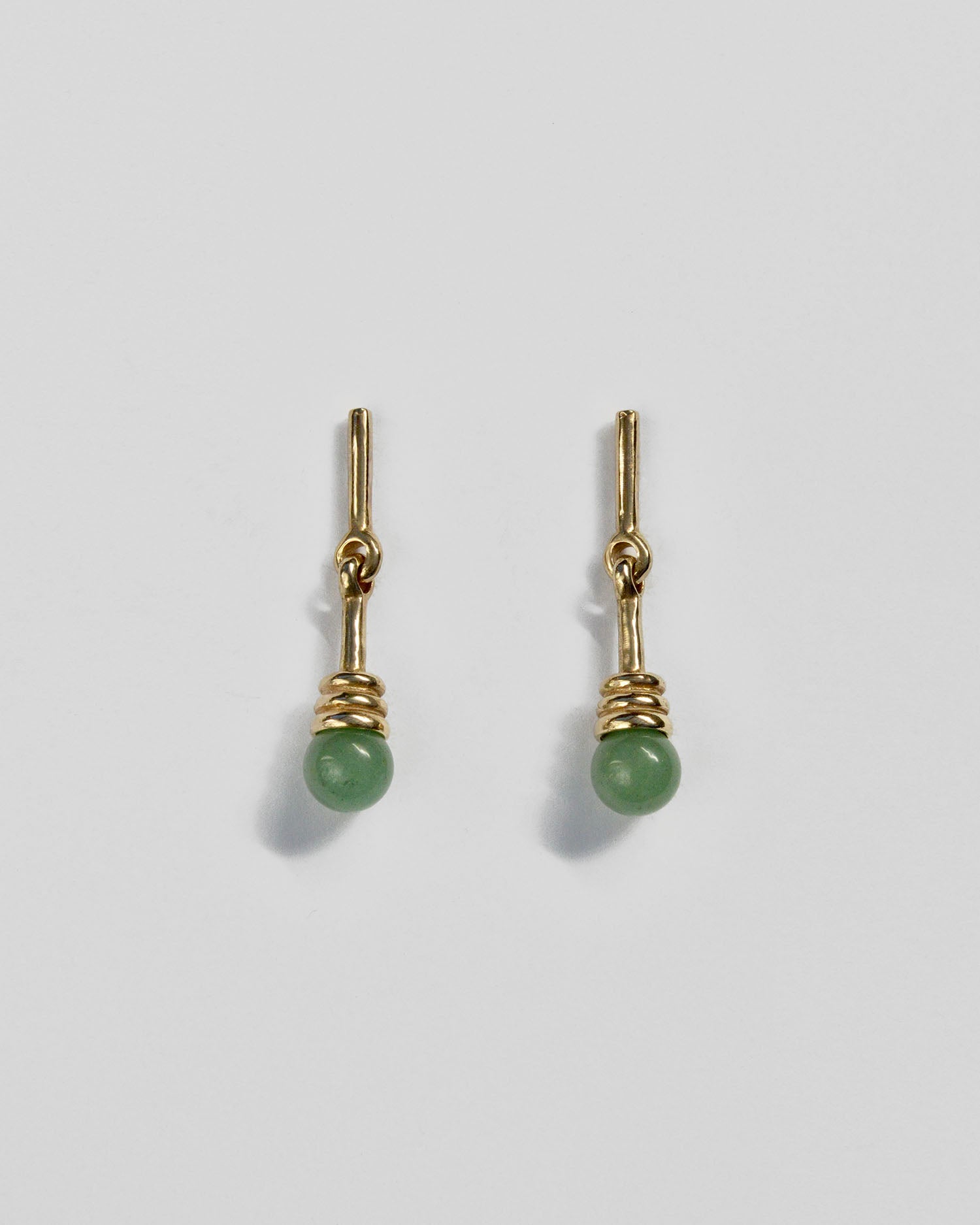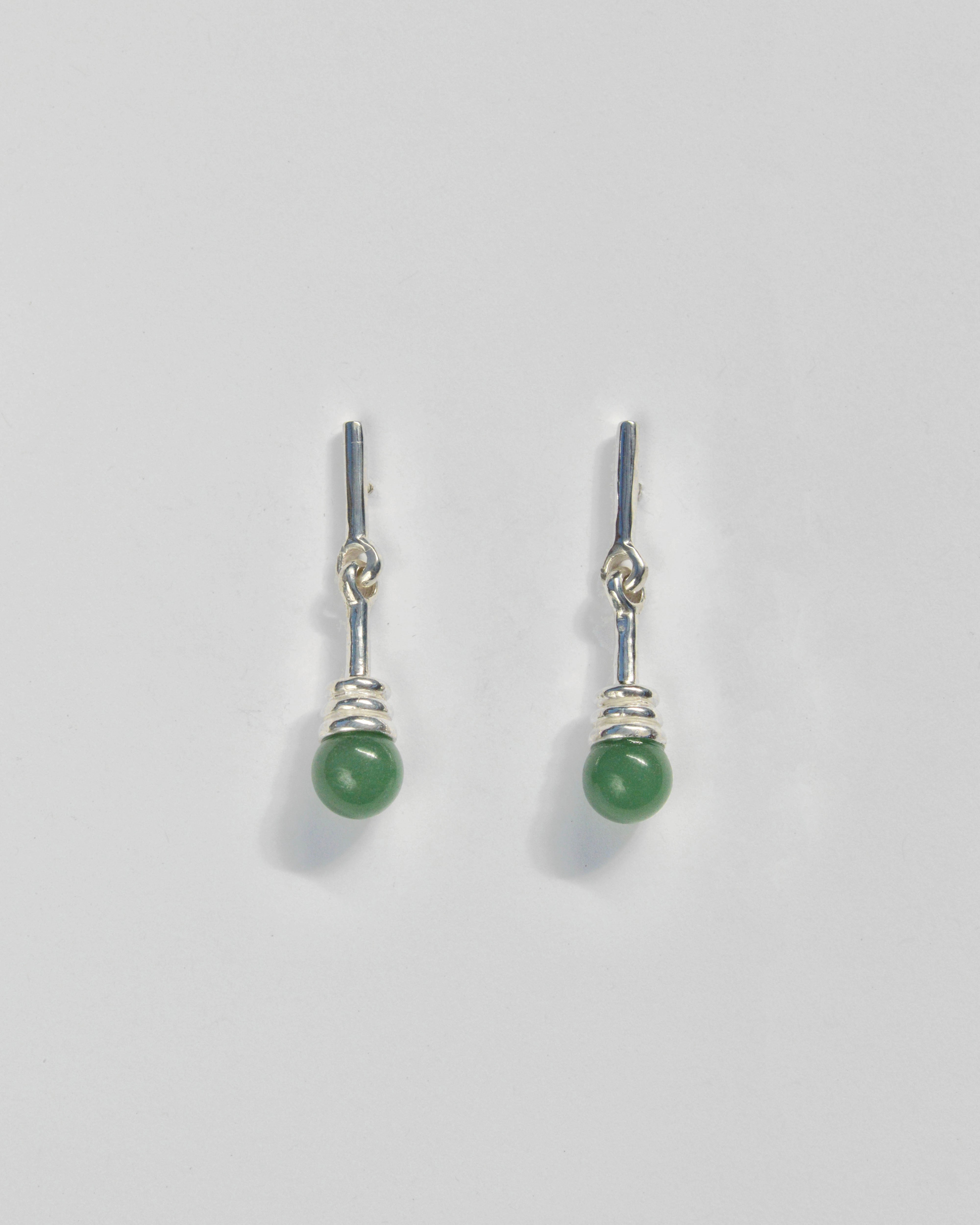 Solid brass or sterling silver set with translucent aventurine spheres measure 1.8" x .5" and weigh 6 grams each.
