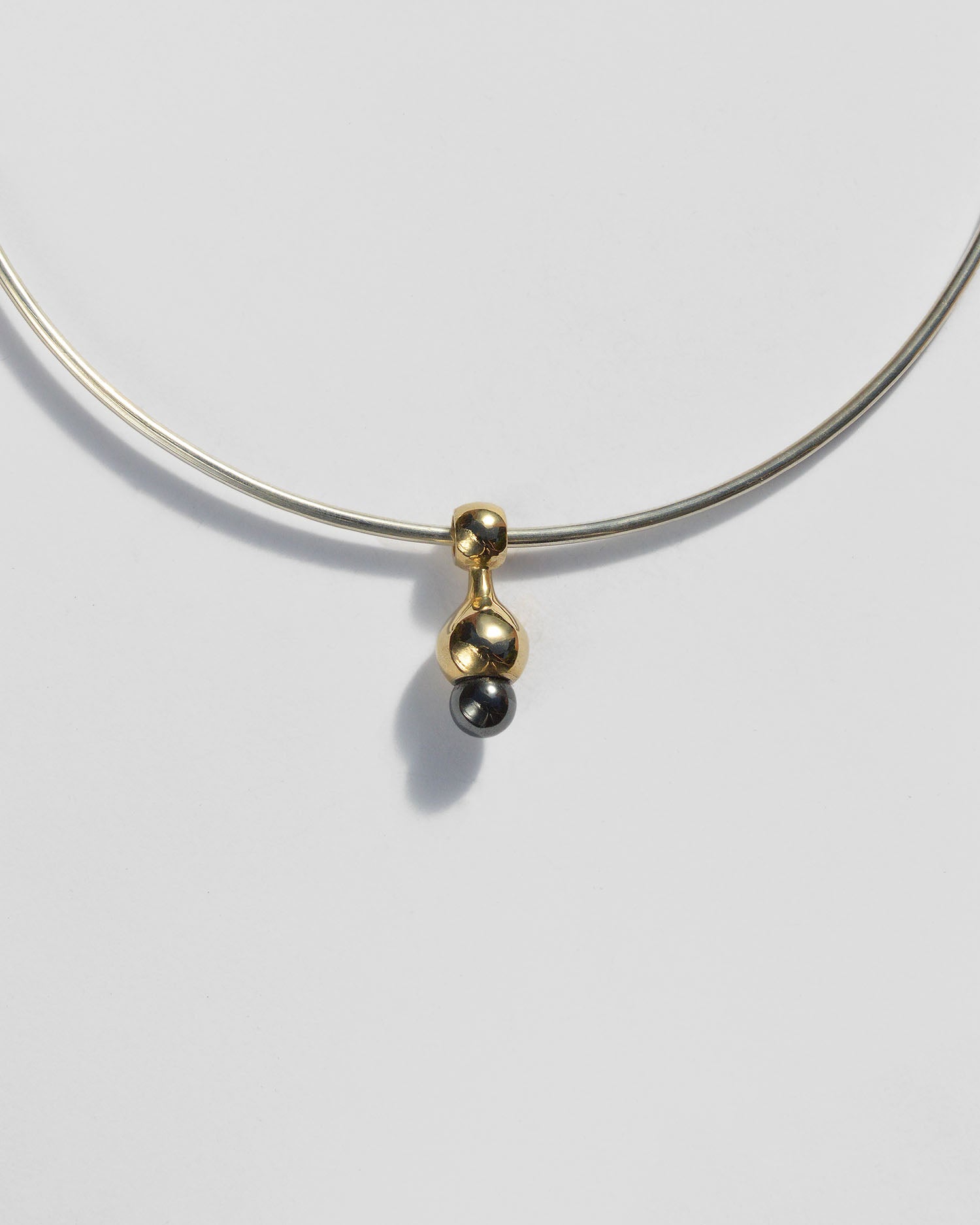 Our Henri pendant was hand sculpted in wax and then cast in brass, set with a hematite sphere. Available on either a sterling silver rolo chain or a solid sterling collar for two different looks.