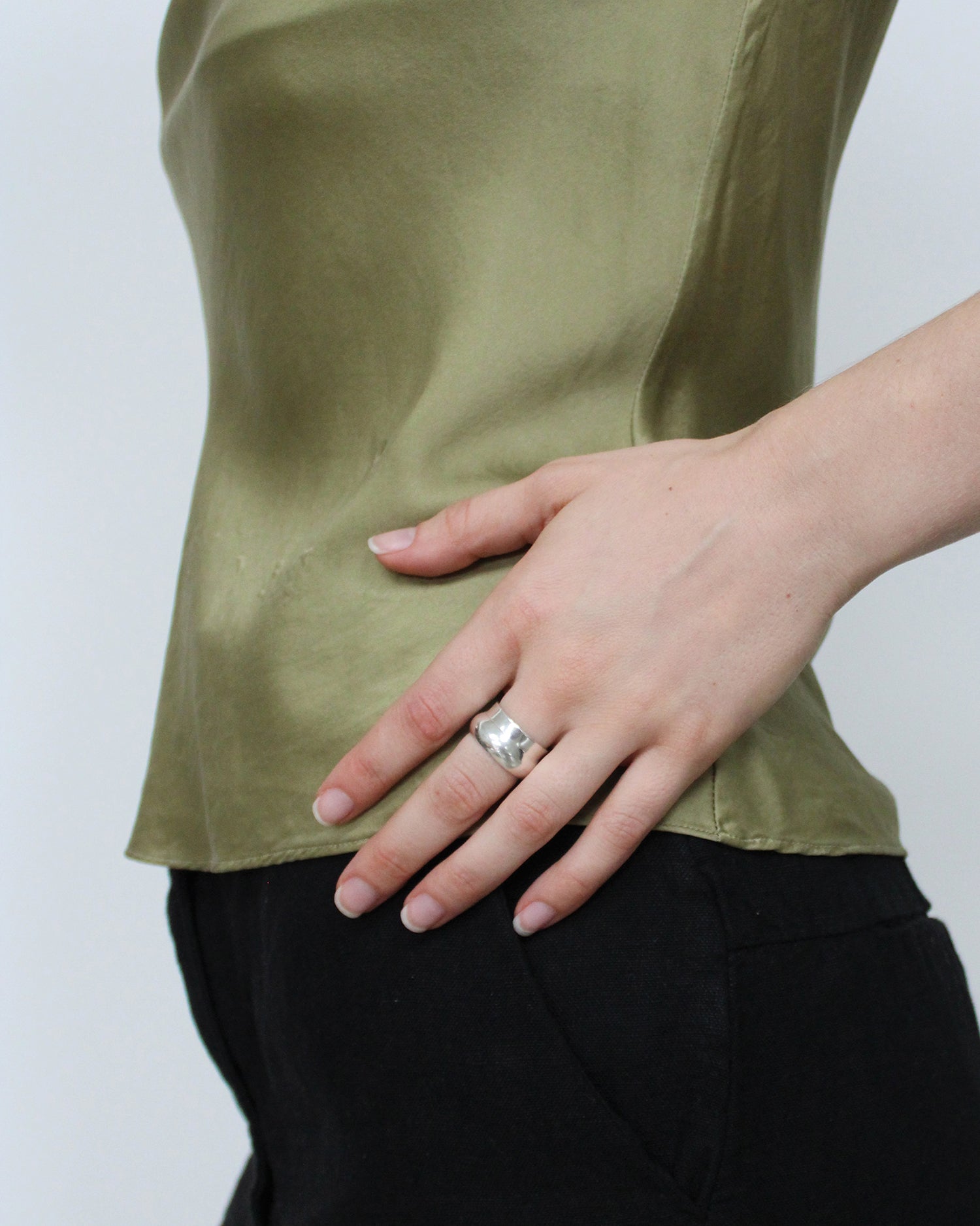 A contoured take on the cigar band, the lou ring is available in solid brass or sterling silver.
