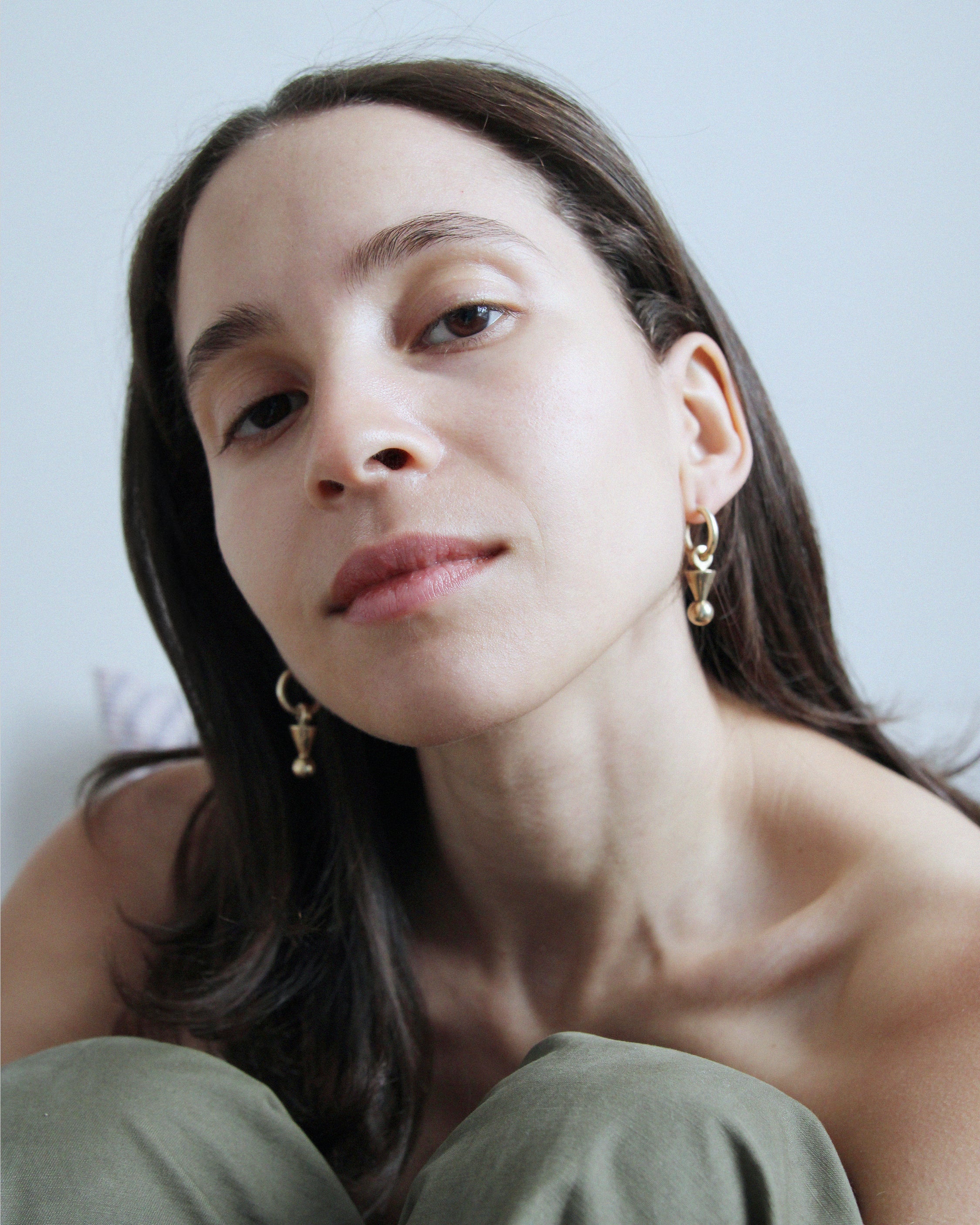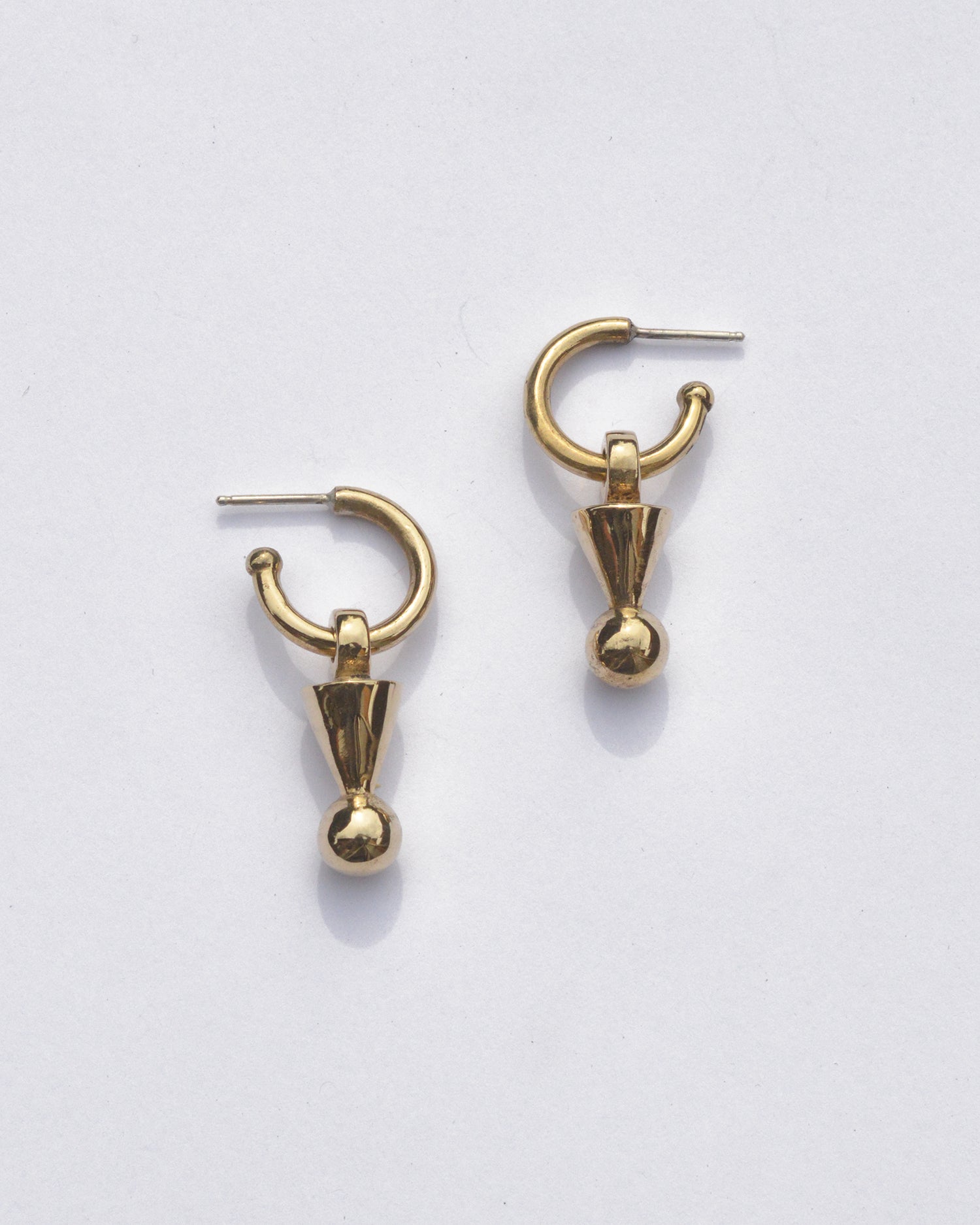 Modular silver hoops cast in solid brass or sterling silver with removable sculptural drops.